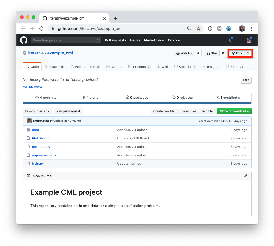 我们在 自定义 Docker 镜像 上预先安装了 CML 和其他有用的库。在上面的示例中,取消注释字段 container: ghcr.io/iterative/cml:0-dvc2-base1) 将使运行器拉取 CML Docker 镜像。该镜像为了方便起见,已在 Ubuntu LTS 基础之上设置了 Node.js、Python 3、DVC 和 CML。