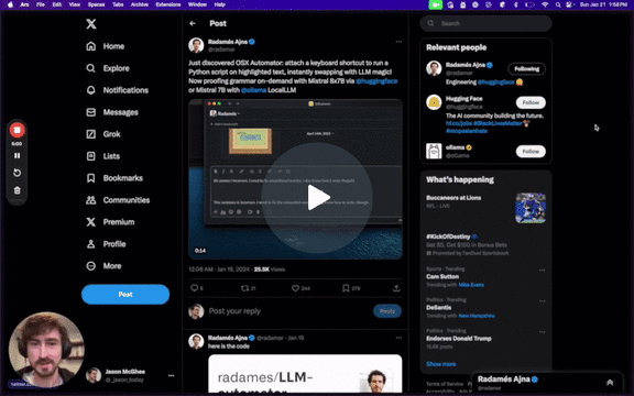 plock 是一款轻量级开源工具,旨在让你在任何可以输入文字的地方,直接调用大语言模型(LLM)或其他脚本并实时流式输出结果。它完美解决了在不同应用间频繁切换以使用 AI 助手的痛点,无需复制粘贴,只需选中文字或编写提示词,通过快捷键即可原地获得智能回复。