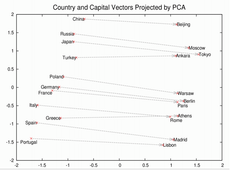 - 输入是一个大型语料库,输出是一个通常由几百维组成的向量空间,语料库中的每个词都会被映射到这个空间中的一个向量。