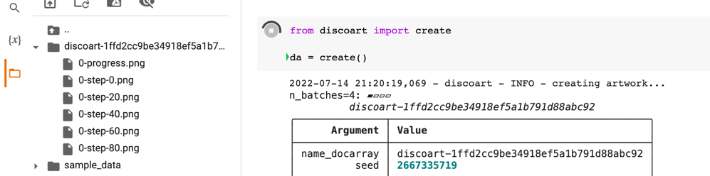 pip install discoart即可在自托管环境或 Colab 中平滑安装,彻底消除依赖报错,开箱即用。 - 状态持久化保障:利用内置的结果恢复与持久化功能,即使会话意外中断,也能随时 fetch 实时结果,确保创作进度零丢失。