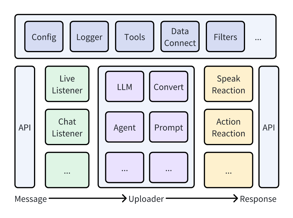 VideoCommentUP和ChatUP后,机器人自动总结视频内容回复评论,并处理私信,实现 24 小时不间断粉丝维系。 - 多场景无缝切换:一套代码即可同时支撑直播、视频评论、私信及终端语音交互,大幅降低开发门槛与维护成本。