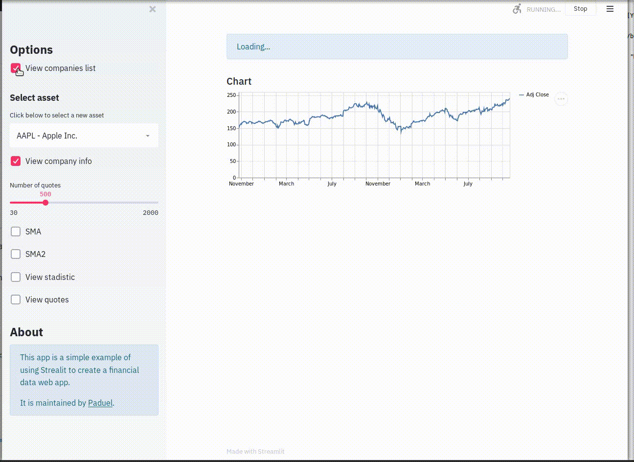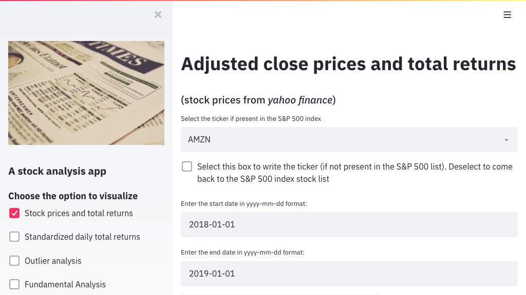 ![]() 金融图表⭐ 67 · :octocat: 代码 这个应用是一个使用 Streamlit 创建金融数据 Web 应用的简单示例 由 @paduel 提供 | ![]() 股票分析应用⭐ 43 · :octocat: 代码 一个使用 Streamlit 的股票分析应用 由 @antonio-catalano 提供 | ![]() TechSEO 爬虫⭐ 41 · :octocat: 代码 利用 GitHub Pages 和维基百科构建一个包含三个域名的小型互联网,并构建一个爬... 由 @jroakes 提供 |