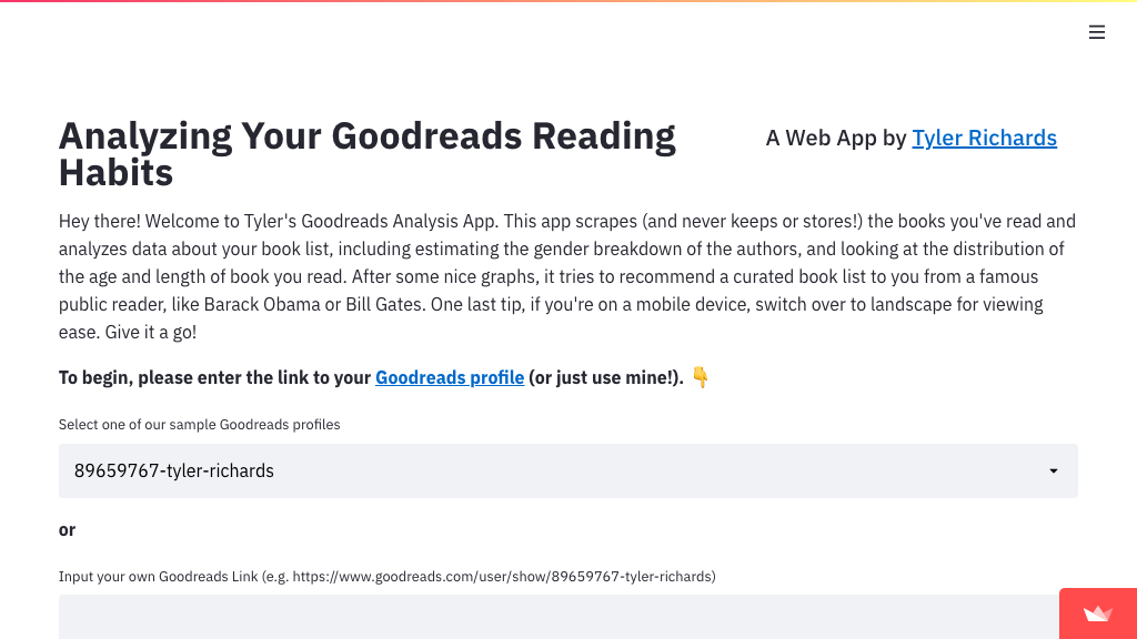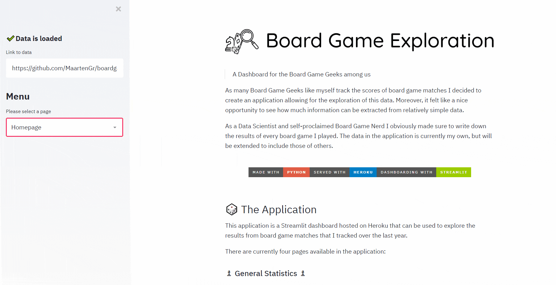![]() Goodreads 应用⭐ 17 · :octocat: 代码 分析你的 Goodreads 阅读习惯 由 @tylerjrichards 提供 | ![]() 桌游探索⭐ 13 · :octocat: 代码 一款用于探索桌游数据的 Heroku 应用 由 @MaartenGr 提供 | ![]() Apache JMeter⭐ 10 · :octocat: 代码 利用 Streamlit 强化 Apache JMeter 功能,并为机器学习打开大门 由 @QAInsights 提供 |