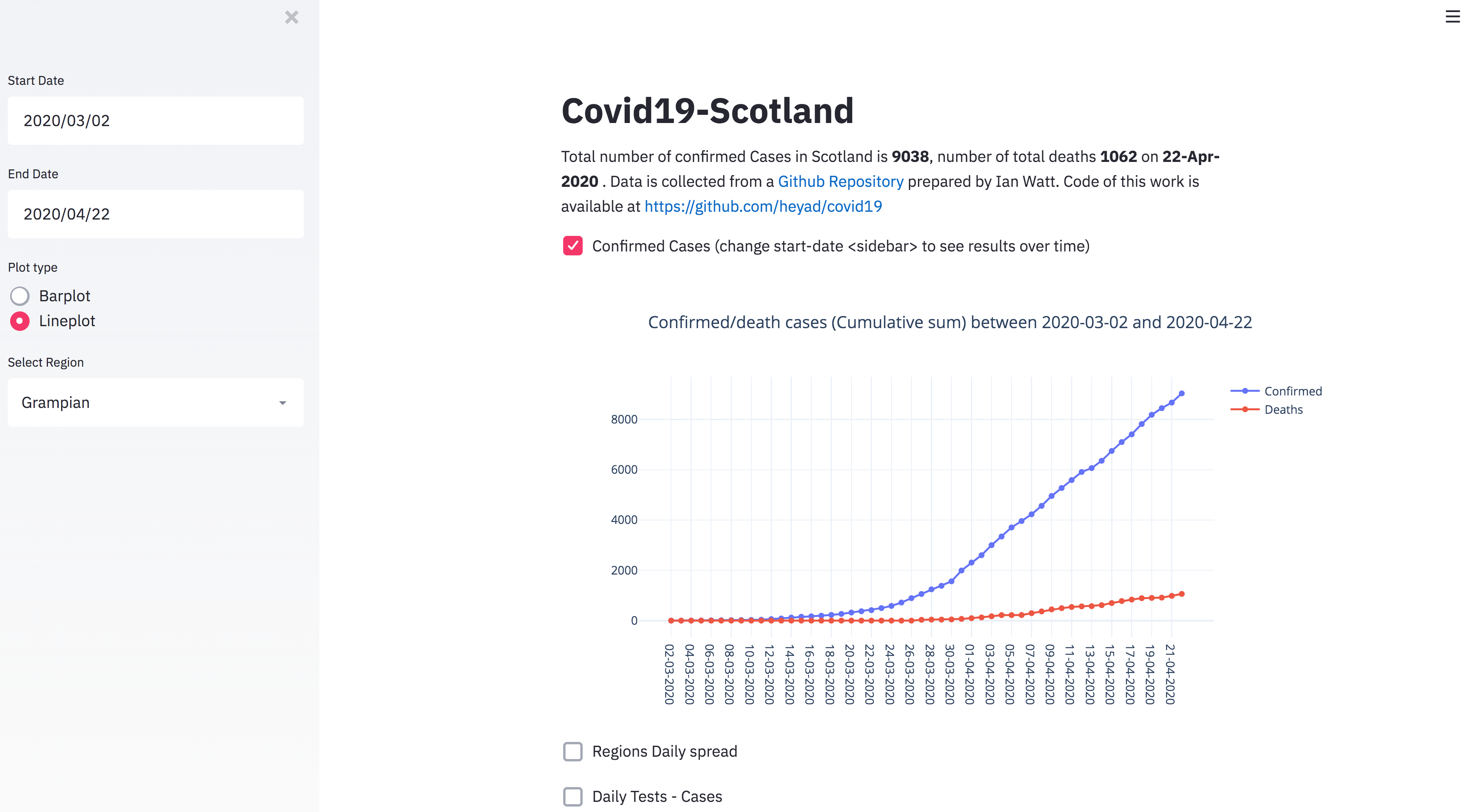 ![]() Auto Vaidya⭐ 18 · :octocat: 代码 一个将深度学习应用于医疗场景的开源项目 由 @Auto-Vaidya 提供 | ![]() Covid19-Scotland⭐ 12 · :octocat: 代码 加载、探索和分析来自苏格兰及世界各地的 Covid19 相关数据 由 @heyad 提供 | ![]() Covid 追踪⭐ 7 · :octocat: 代码 北加州地区 Covid 数据追踪应用 由 @PanditPranav 提供 |