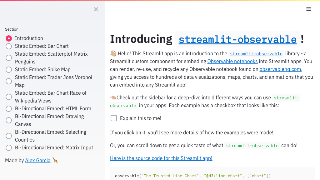 - awesome-streamlit:包含多个内置 Streamlit 应用及其他资源的网站