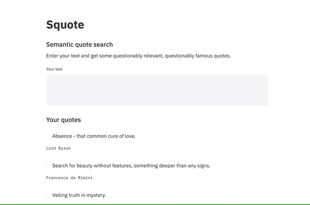 ![]() 情感分析工具⭐ 14 · :octocat: 代码 它会分析用户的正面或负面情绪 由 @patidarparas13 提供 | ![]() Squote⭐ 9 · :octocat: 代码 语义搜索引言 由 @cjwallace 提供 | ![]() 帮助我阅读⭐ 8 · :octocat: 代码 一款使用 Streamlit + HuggingFace 构建的强大应用,可获取摘要、问答、转... 由 @Anku5hk 提供 |