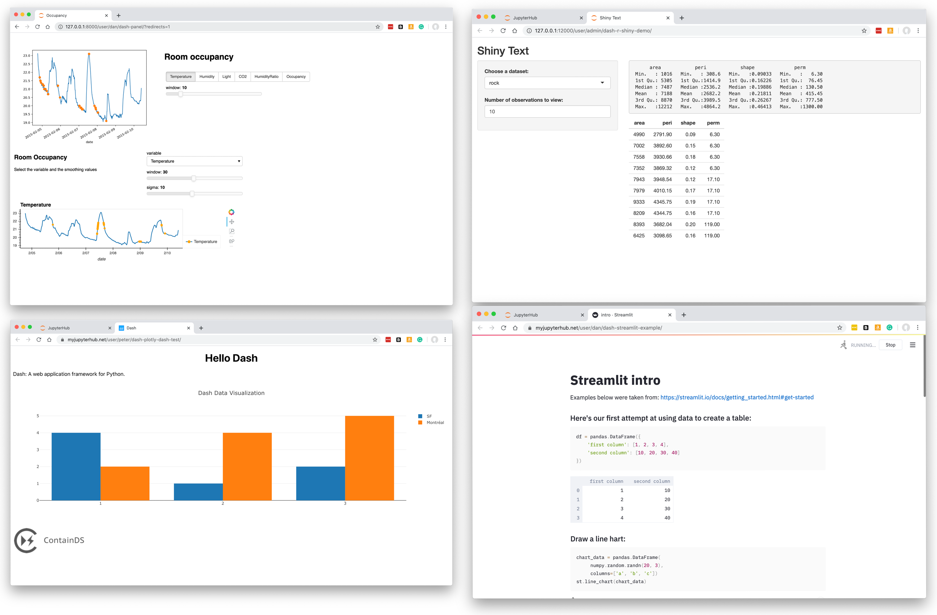 ![]() HiPlot⭐ 2.1K · :octocat: 代码 HiPlot 让理解高维数据变得简单 由 @facebookresearch 提供 | ![]() spaCy⭐ 380 · :octocat: 代码 适用于 Streamlit 应用的 spaCy 模块和可视化工具 由 @explosion 提供 | ![]() ContainDS 仪表板⭐ 100 · :octocat: 代码 用于 ContainDS 仪表板的 JupyterHub 扩展 由 @ideonate 提供 |