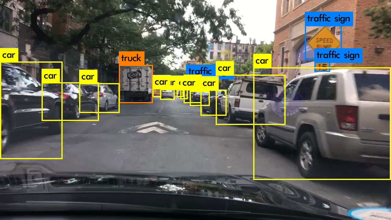 在 BDD 测试集上,我们获得了 19.2 的 mAP(输入分辨率为 512 x 512)。