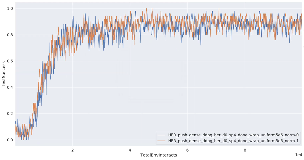 - 状态归一化:使FetchPush-v1任务的成功率从0提升至1。
