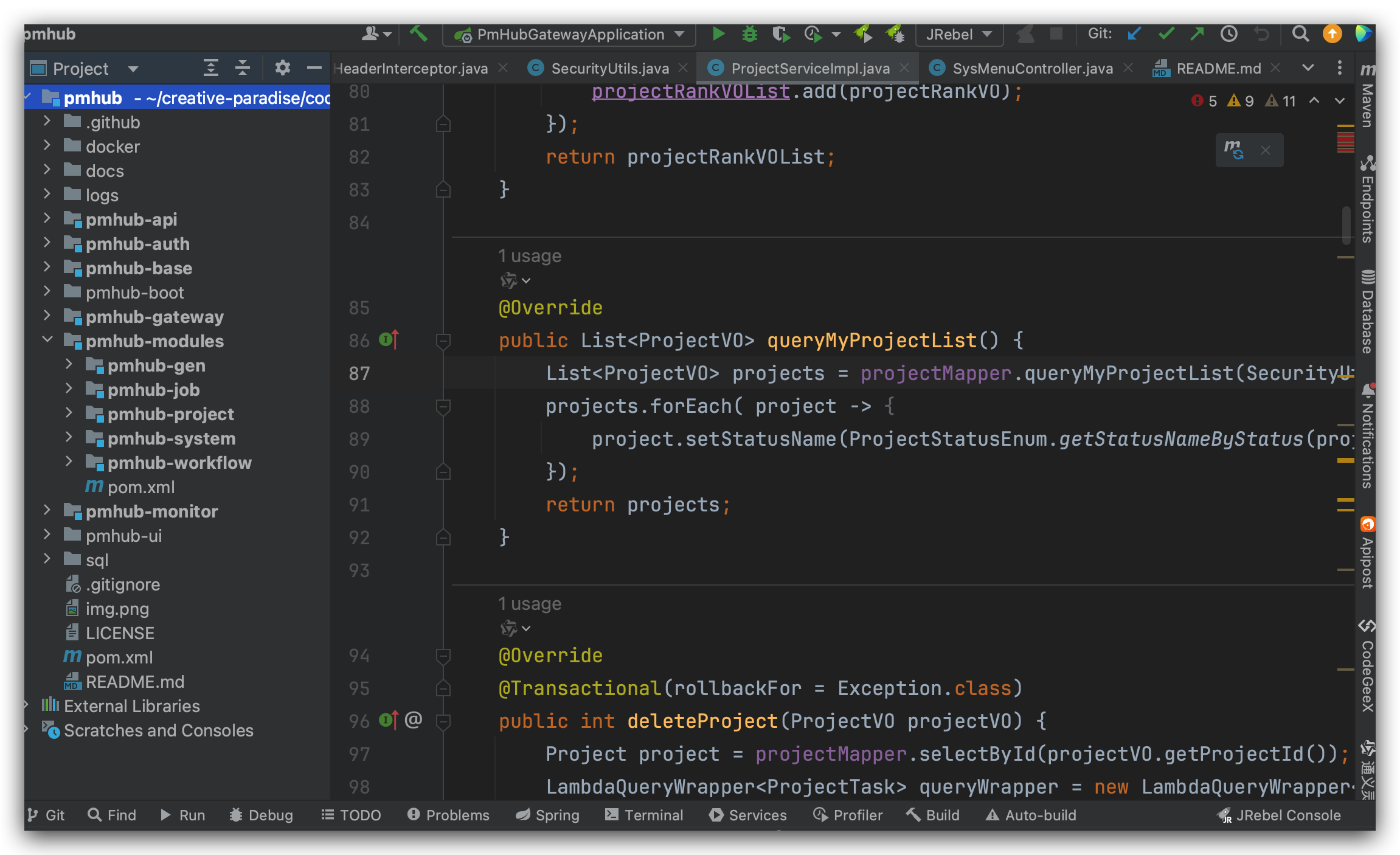 PmHub 是一套基于 SpringCloud & LLM 的微服务智能项目管理系统,这个项目旨在帮助小伙伴们快速掌握微服务/分布式项目的架构设计和开发流程,如果想在校招或者社招中拿到一个满意的 offer,PmHub 将是一个非常 nice 的选择。