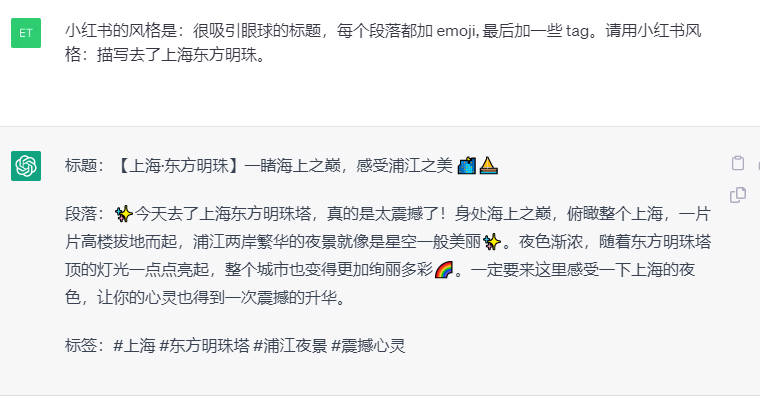 - 一键调用模板:直接复制“模仿小红书的风格”提示词,AI 瞬间输出包含吸睛标题、丰富 Emoji 和精准标签的完整爆款文案。