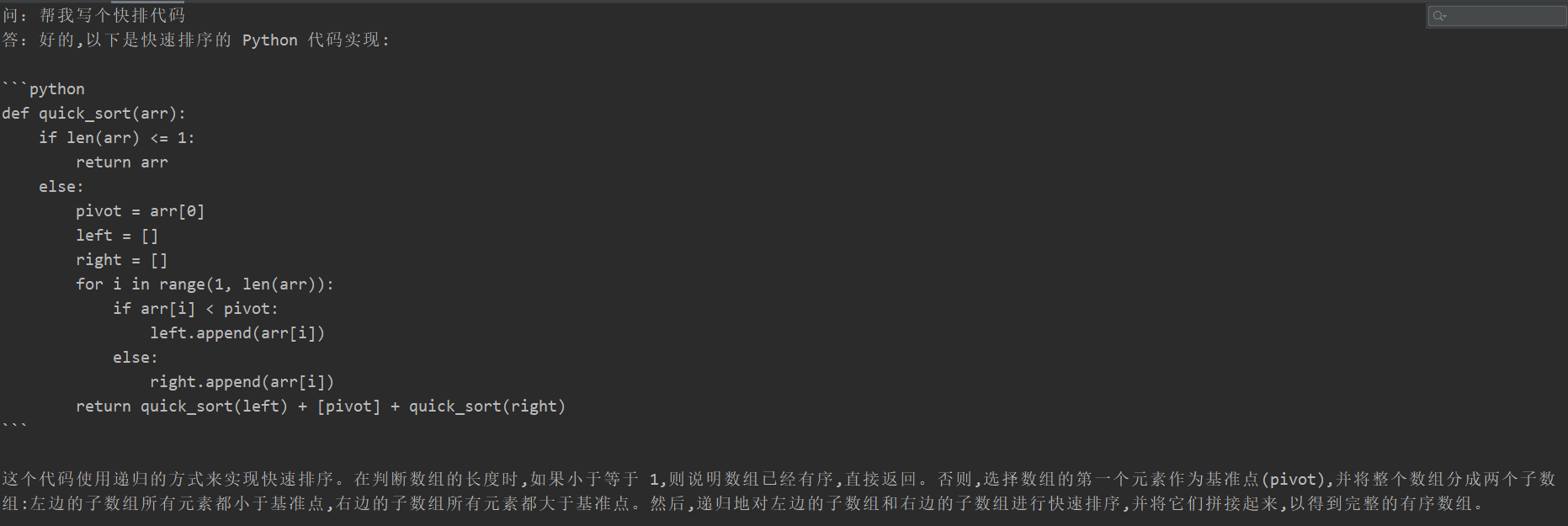 - 模型在指定任务上微调之后,并没有丧失原有能力,例如生成“帮我写个快排算法”,依然可以生成-快排代码。