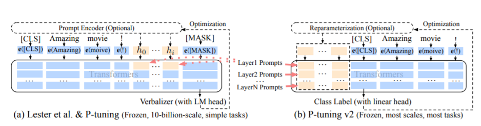 - PT-Only-Embedding效果很不理想,发现在训练时,最后的loss仅能收敛到2.几,而其他机制可以收敛到0.几。分析原因为,输出内容形式与原有语言模型任务相差很大,仅增加额外Embedding参数,不足以改变复杂的下游任务。