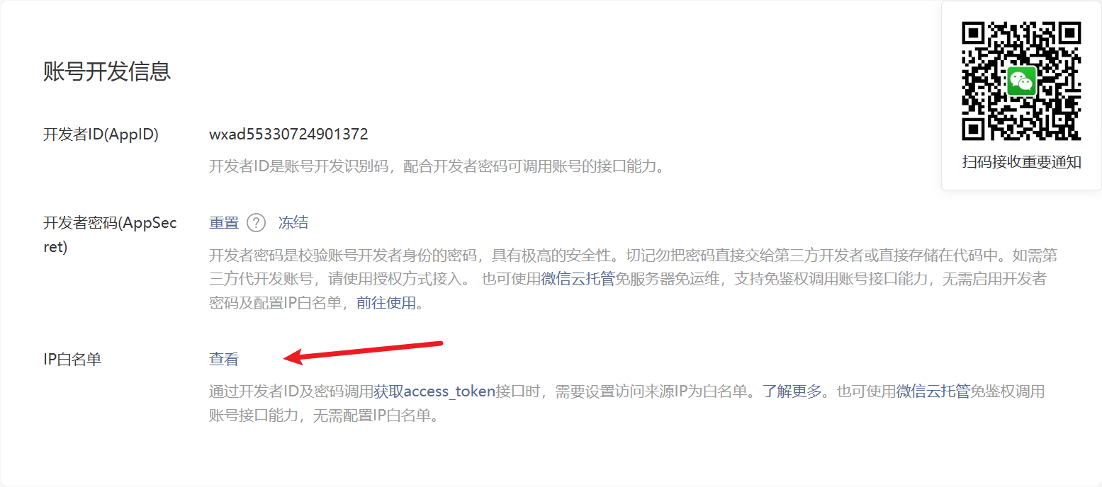 在使用微信公众号相关功能前,please first add your local IP address to the official account's IP whitelist.
