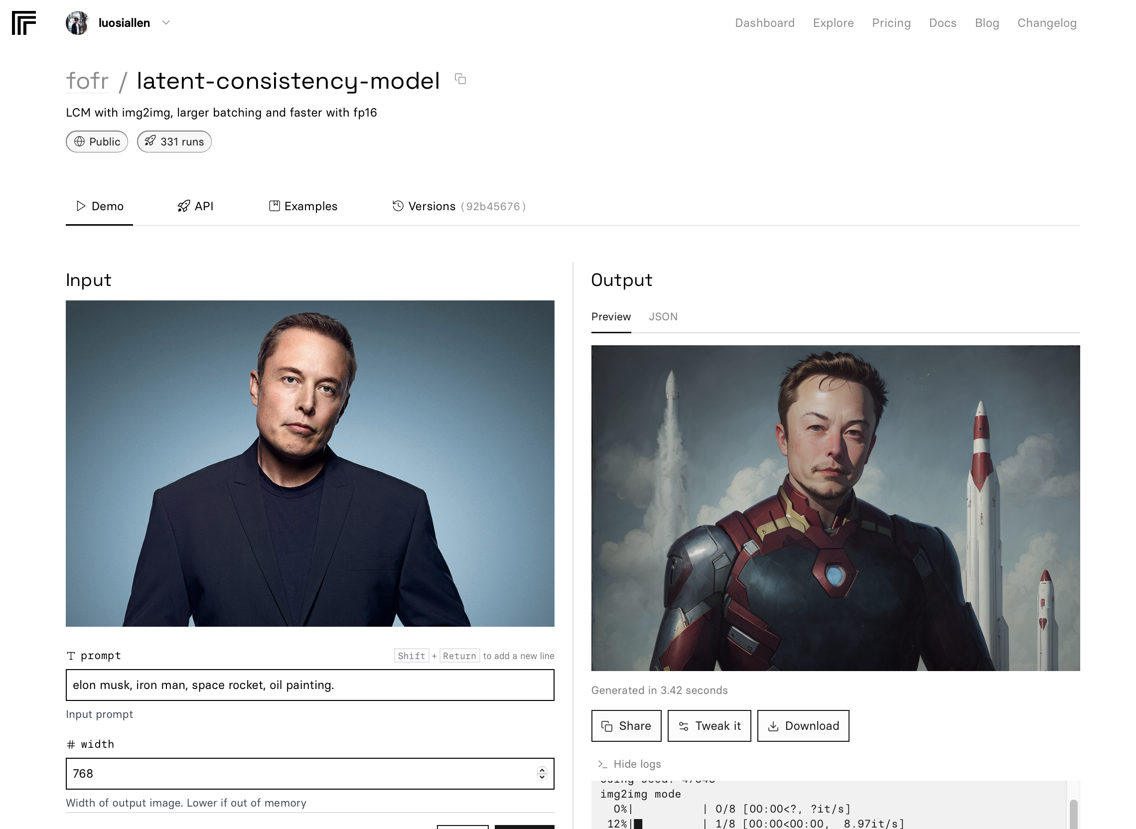 我们现在支持 Img2Img (图像到图像)!在这里尝试令人印象深刻的 img2img 演示:Replicate, SD-webui, ComfyUI, Colab