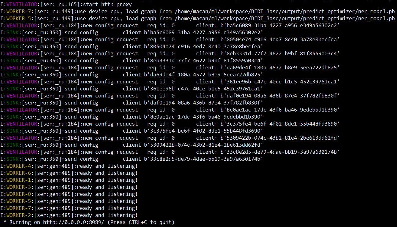 并且 NER 服务器/客户端服务的代码只需稍作修改即可应用于其他任务,例如文本分类,我将在后续提供。