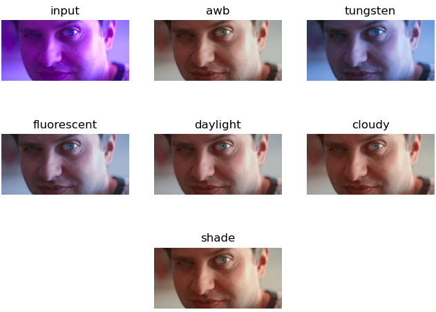 demo_single_image.py处理单张图片。 应用 AWB + 不同白平衡设置的示例:python demo_single_image.py --input_image ../example_images/00.jpg --output_image ../result_images --show。此示例应在../result_images中保存输出图像,并显示如下图像: