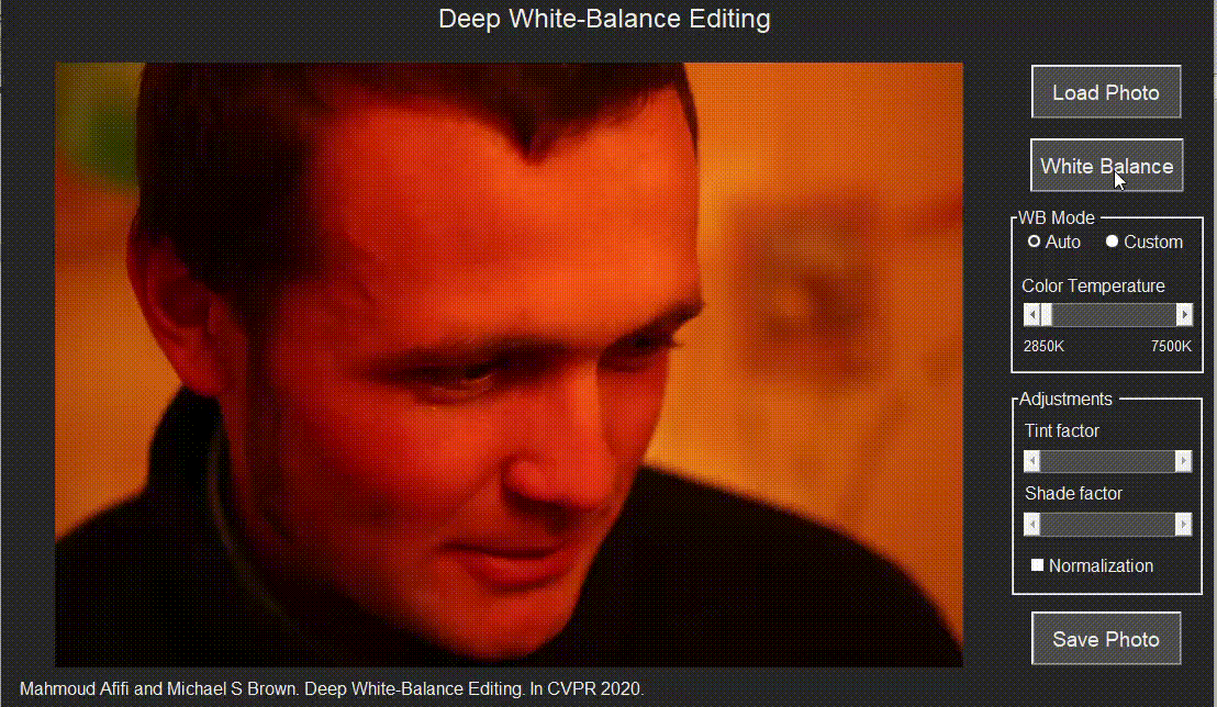 论文参考代码:Deep White-Balance Editing。Mahmoud Afifi 和 Michael S. Brown,CVPR 2020。如果您使用此代码或我们的数据集,请引用我们的论文: