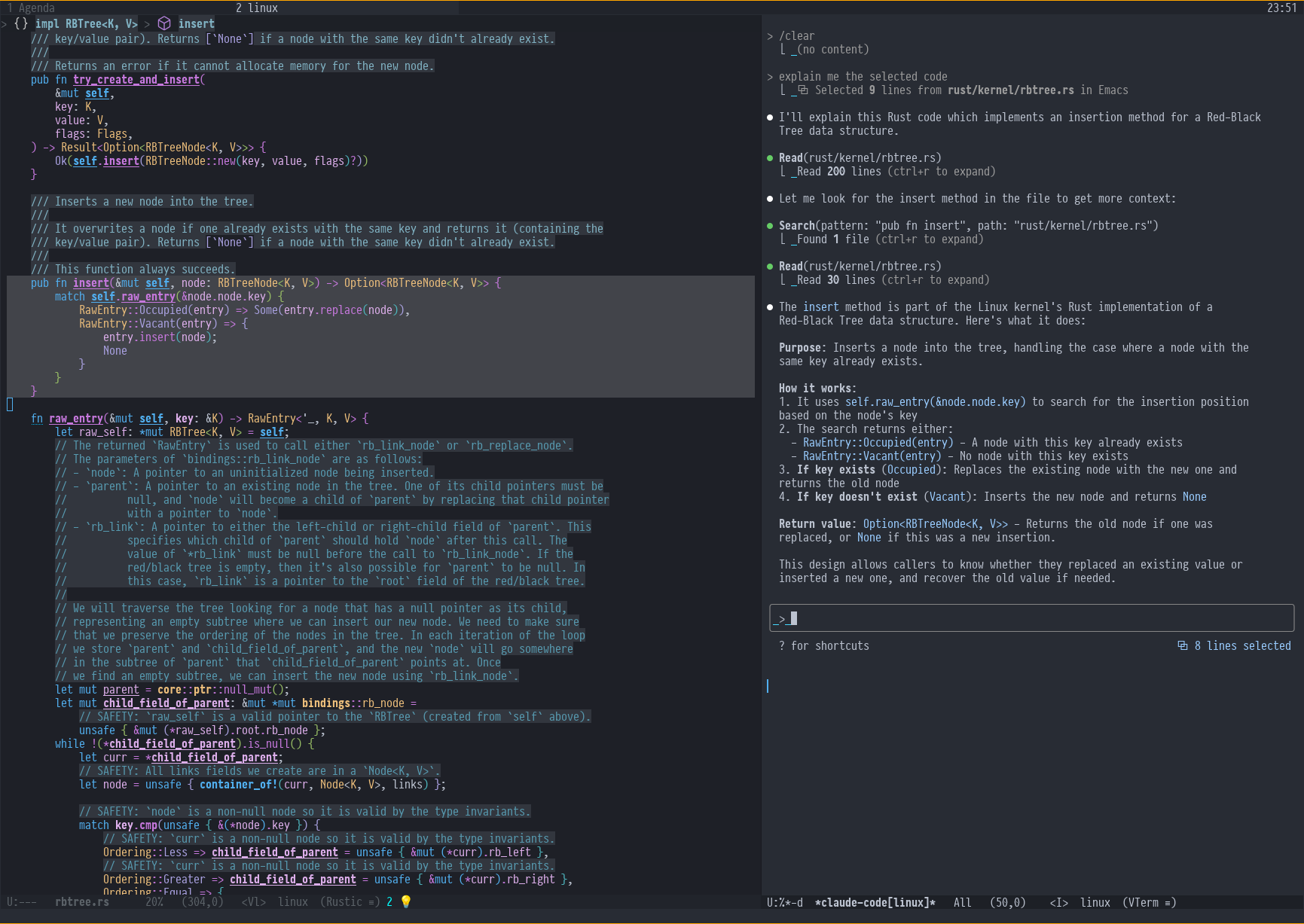 这种深度集成意味着 Claude Code 了解您的项目上下文,并可以利用 Emacs 广泛的生态系统来提供更智能和上下文感知的辅助。