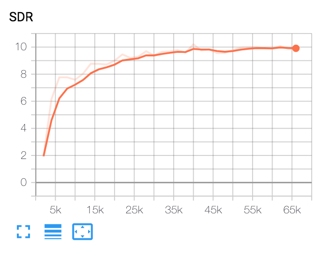 - SDR 收敛值为 10,略低于论文中的结果。