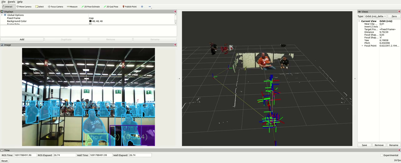 针对 Ultralytics 提供的 YOLO 模型的 ROS 2 封装,用于执行目标检测与跟踪、实例分割、人体姿态估计以及定向边界框(OBB)任务。此外,还支持基于深度图像的目标检测、实例分割和人体姿态估计的 3D 版本。