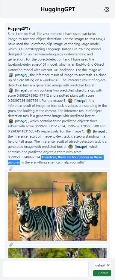 查看我们的论文:HuggingGPT:用ChatGPT及其伙伴在HuggingFace上解决AI任务,沈永亮、宋凯涛、谭旭、李东升、陆伟明和庄宇婷(前两位作者贡献相当)