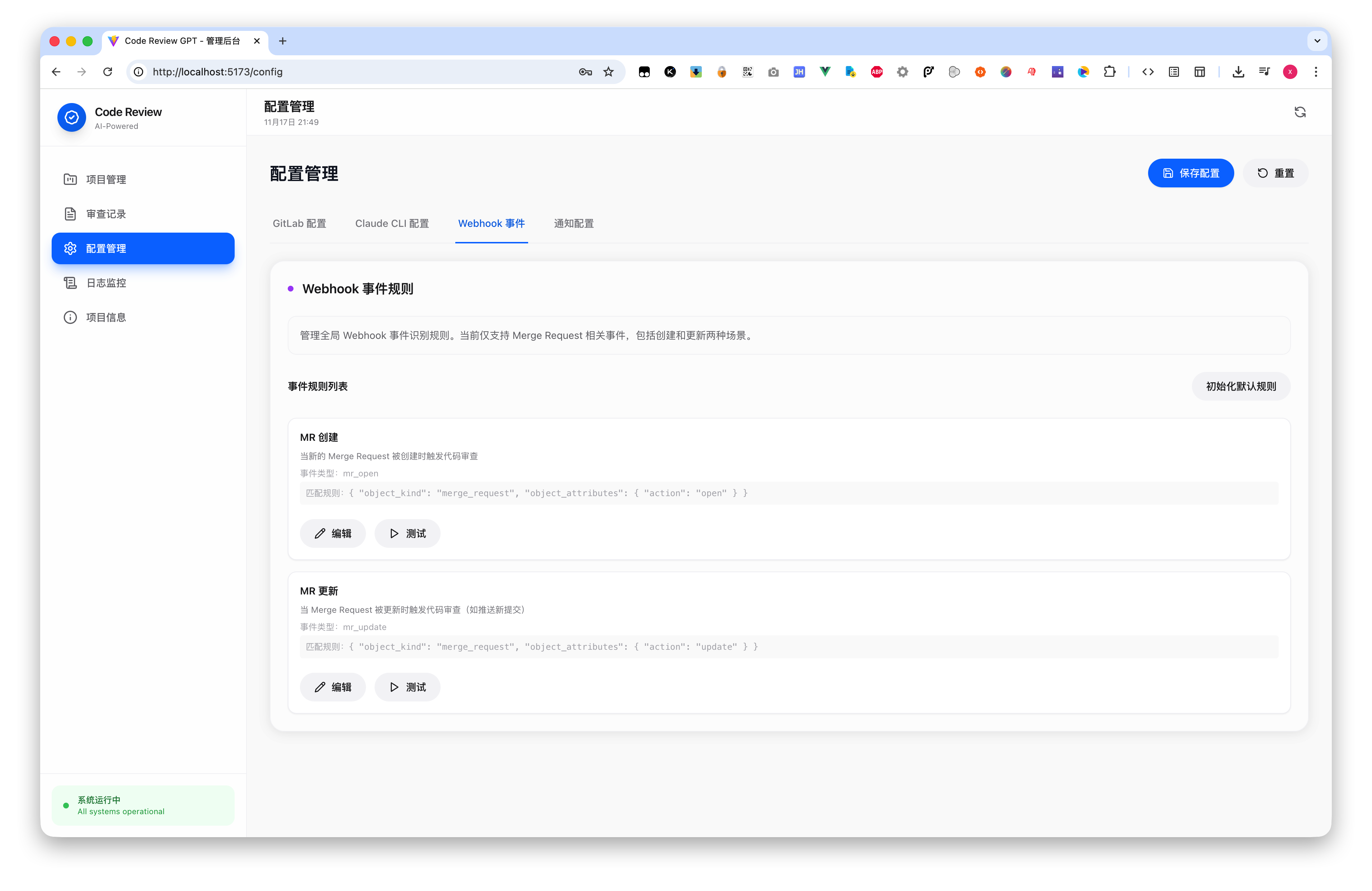 - 即时自动预审:配置 Webhook 后,每次提交触发多 Agent 协同工作,秒级输出详细评审报告,架构师只需关注核心逻辑。