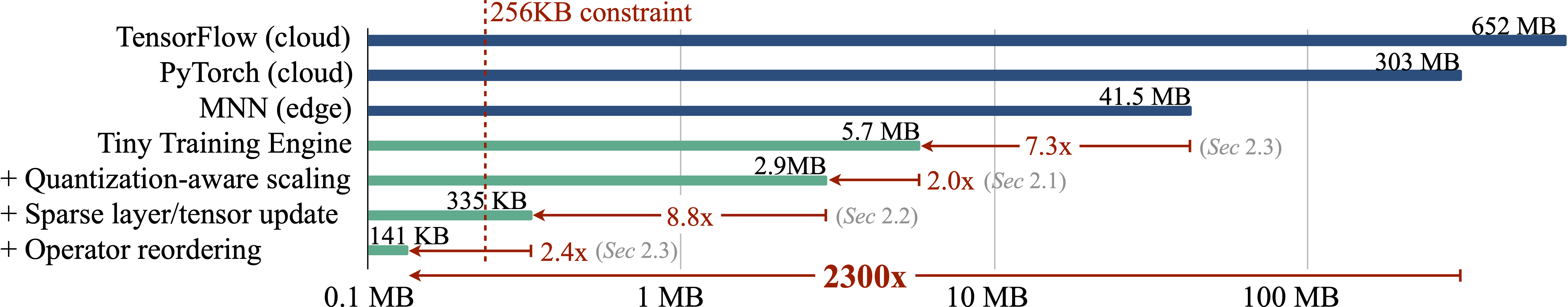 - 若强行在现有的低成本微控制器(MCU)上运行传统训练框架,内存需求远超 256KB 限制,导致设备直接崩溃无法工作。
