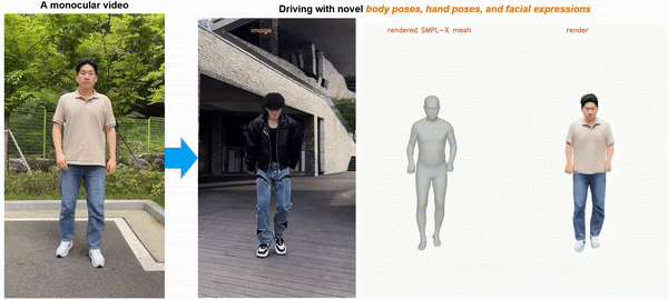 - 这是第一作者离开Meta后对**富有表现力的全身3D高斯化身(ECCV 2024)**的重新实现。所有代码均使用公开资源,未使用任何Meta内部专用模块。最终定稿版本中的结果以及网站上的演示视频均来自此次重写后的代码。