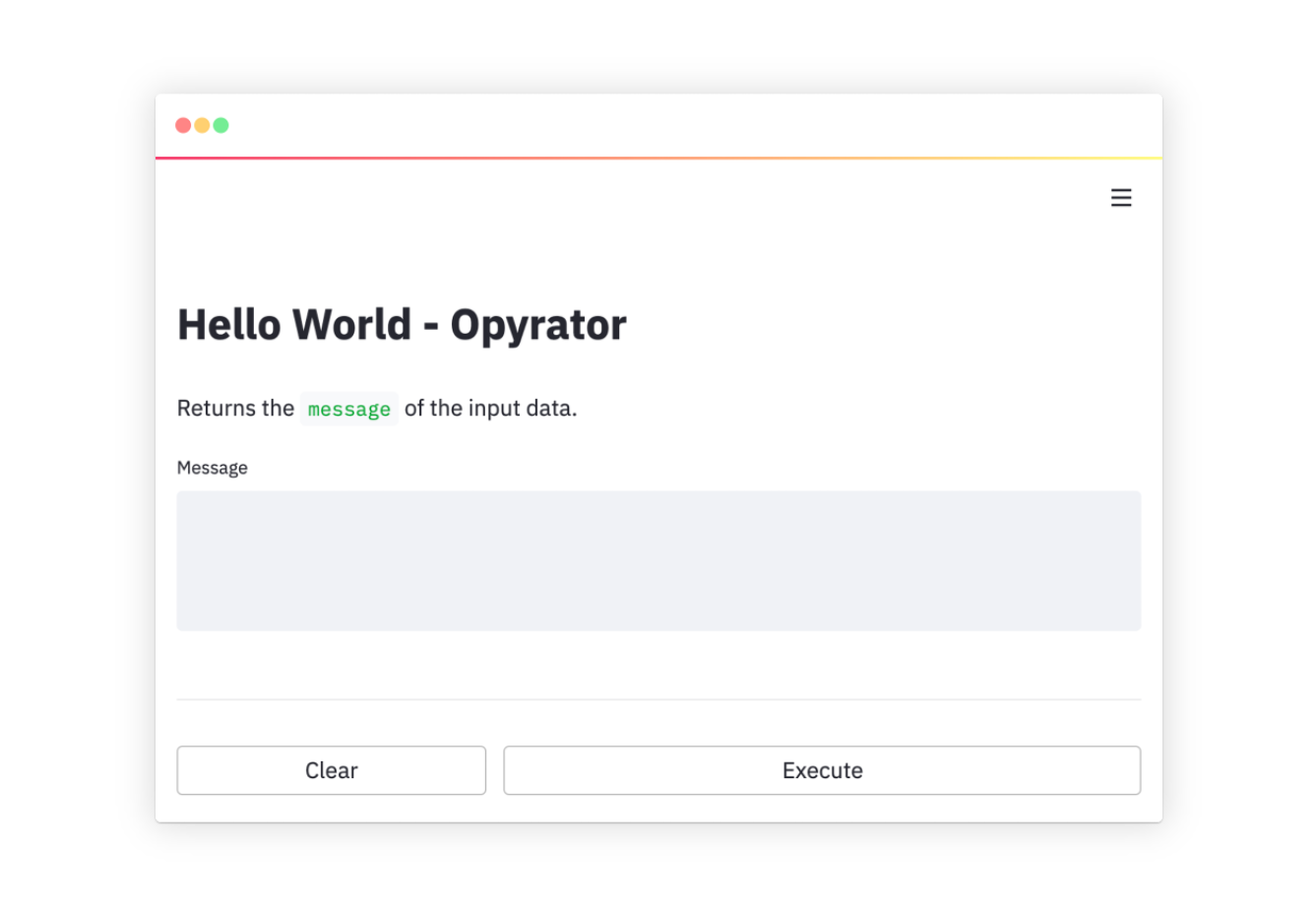 opyrator call http://my-opyrator:8080 '{"message": "hello"}'