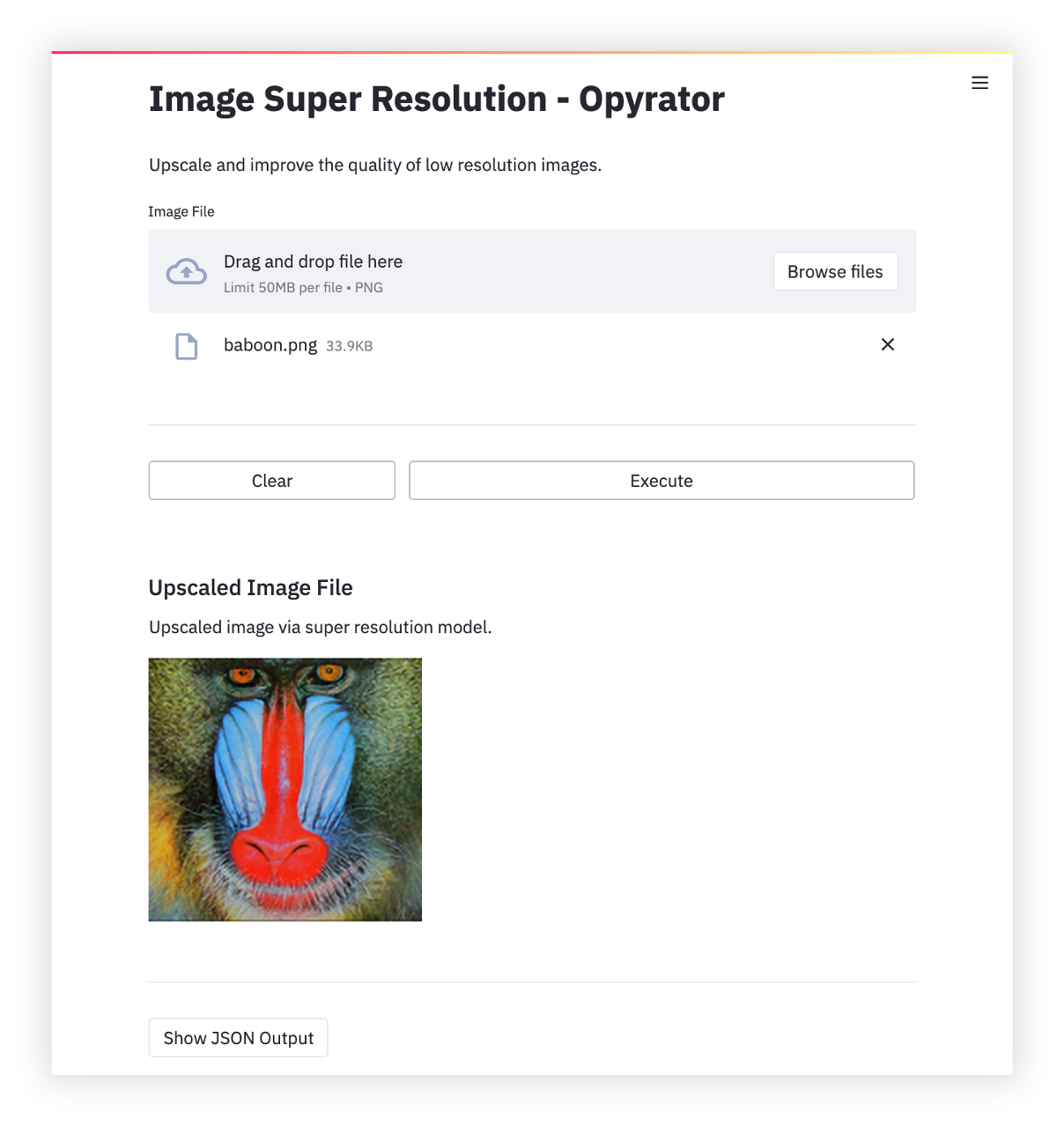 这样,UI 中所有的 Opyrator 调用都会通过配置的 HTTP 端点执行,而不是在 UI 服务器内部直接运行 Python 函数。