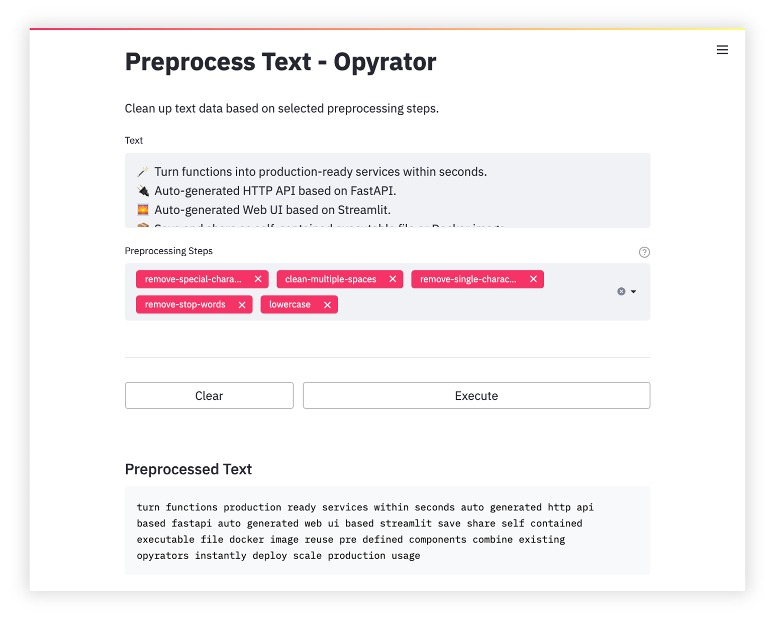 - 🧩 复用预定义组件,并与现有 Opyrator 组合使用。