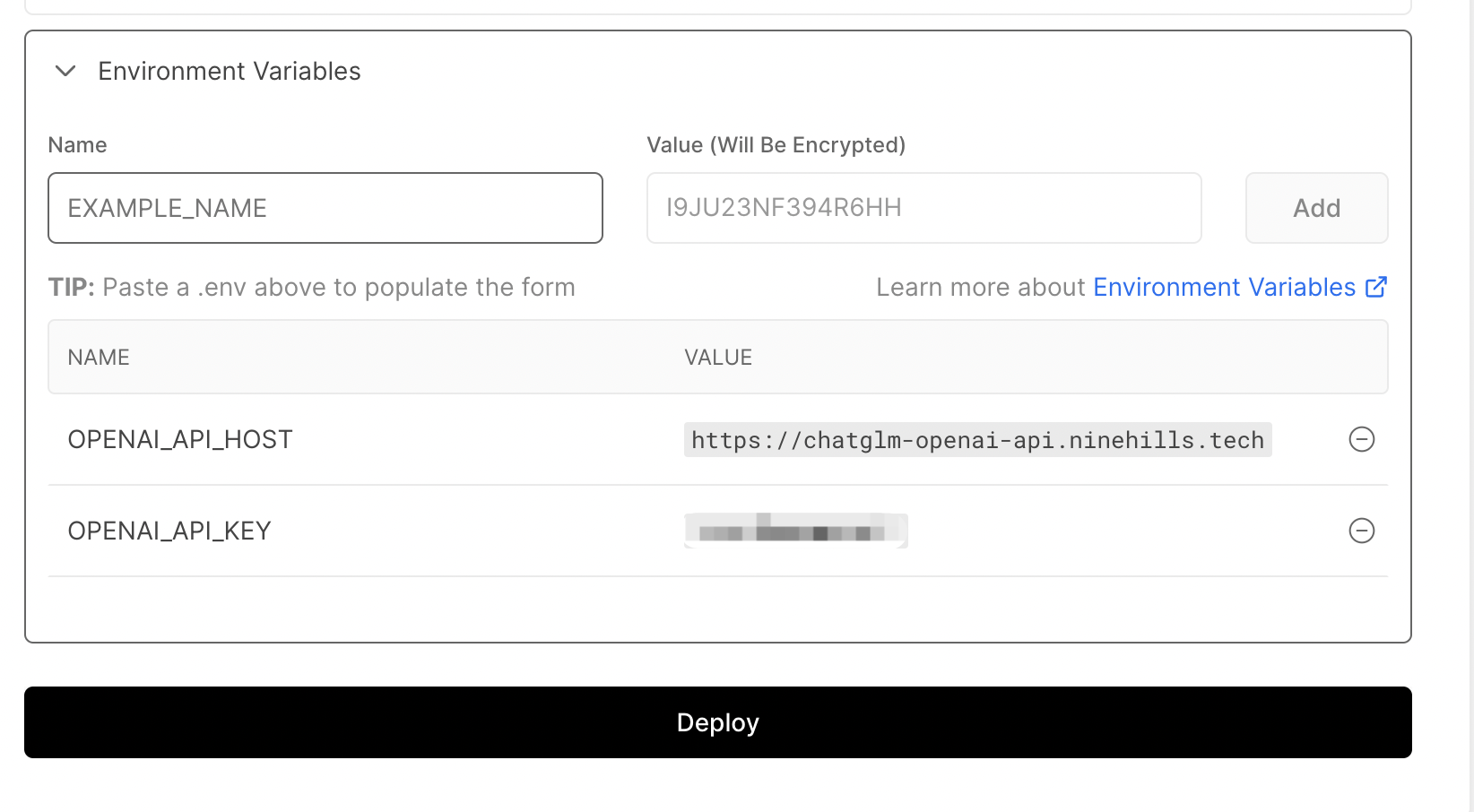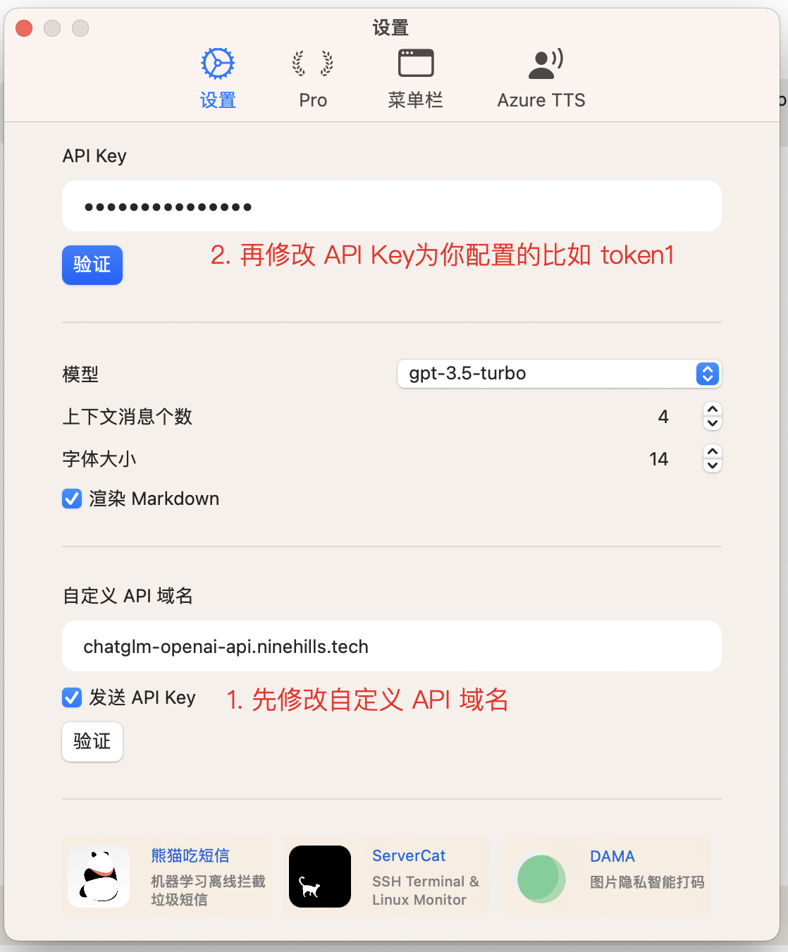 OPENAI_API_KEY=token1,token1 为你的 API keyOPENAI_API_HOST=https://chatglm-openai-api.ninehills.tech,chatglm-openai-api.ninehills.tech 为你的域名