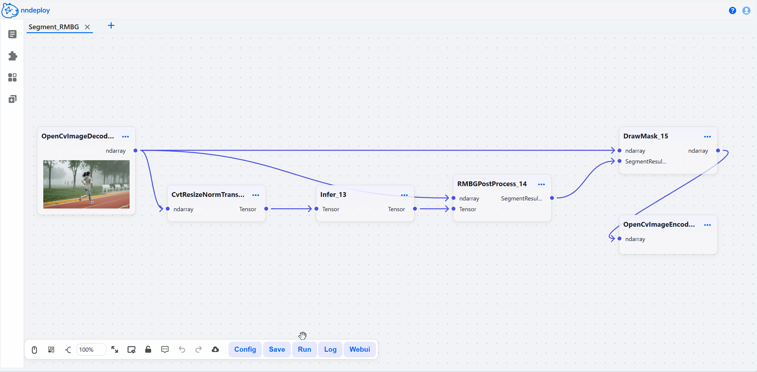 # 方式一:命令行 nndeploy-app --port 8000 # 方式二:代码启动 cd path/to/nndeploy python app.py --port 8000启动成功后,打开 http://localhost:8000 即可访问工作流编辑器。在这里,你可以拖拽节点、调整参数、实时预览效果,所见即所得。