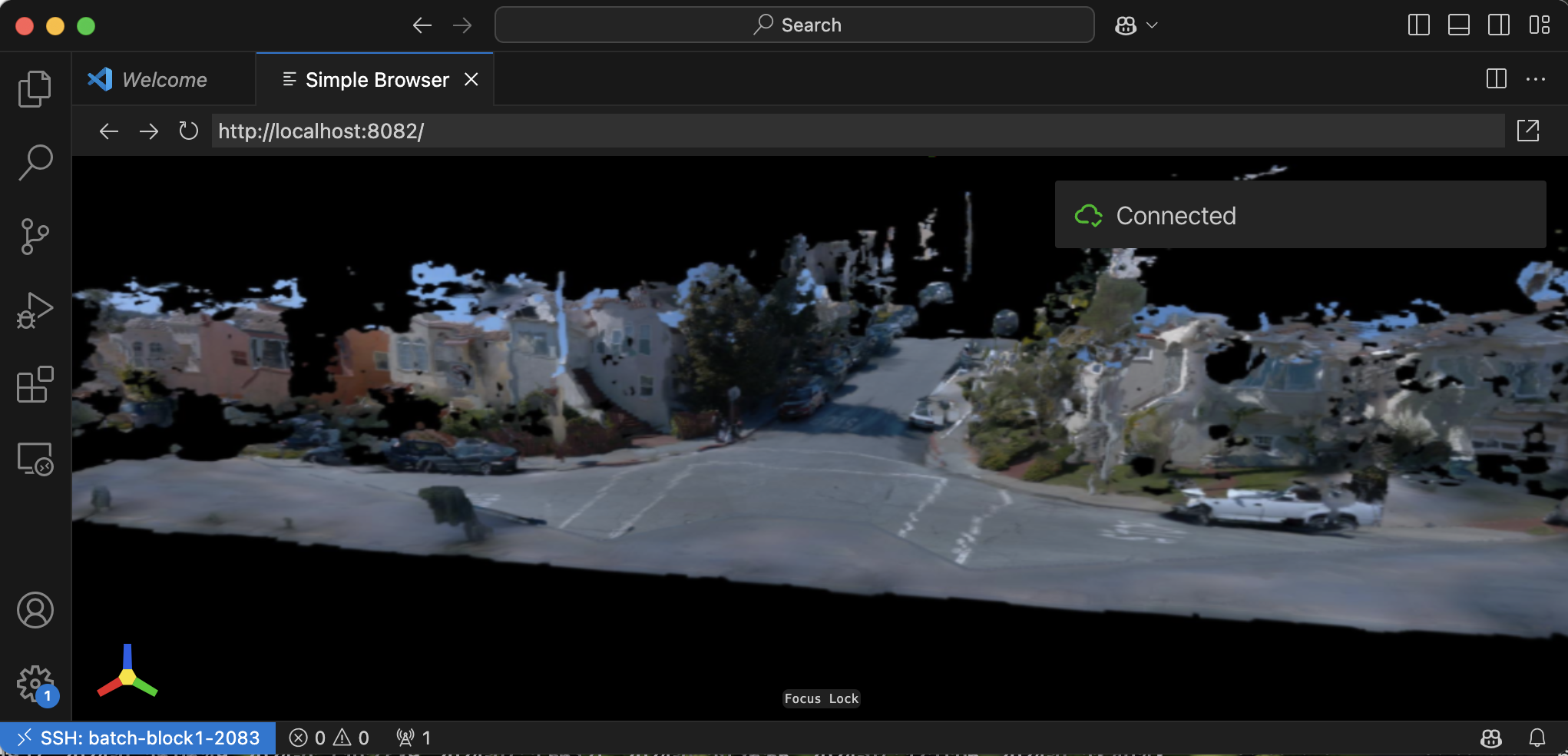 其中 -t 可以是 voxel 或 pc。请勿在精细阶段使用 voxel,因为渲染负担过重。在使用 VSCode 连接远程机器时,可以轻松完成此操作;VSCode 会自动为您转发端口。