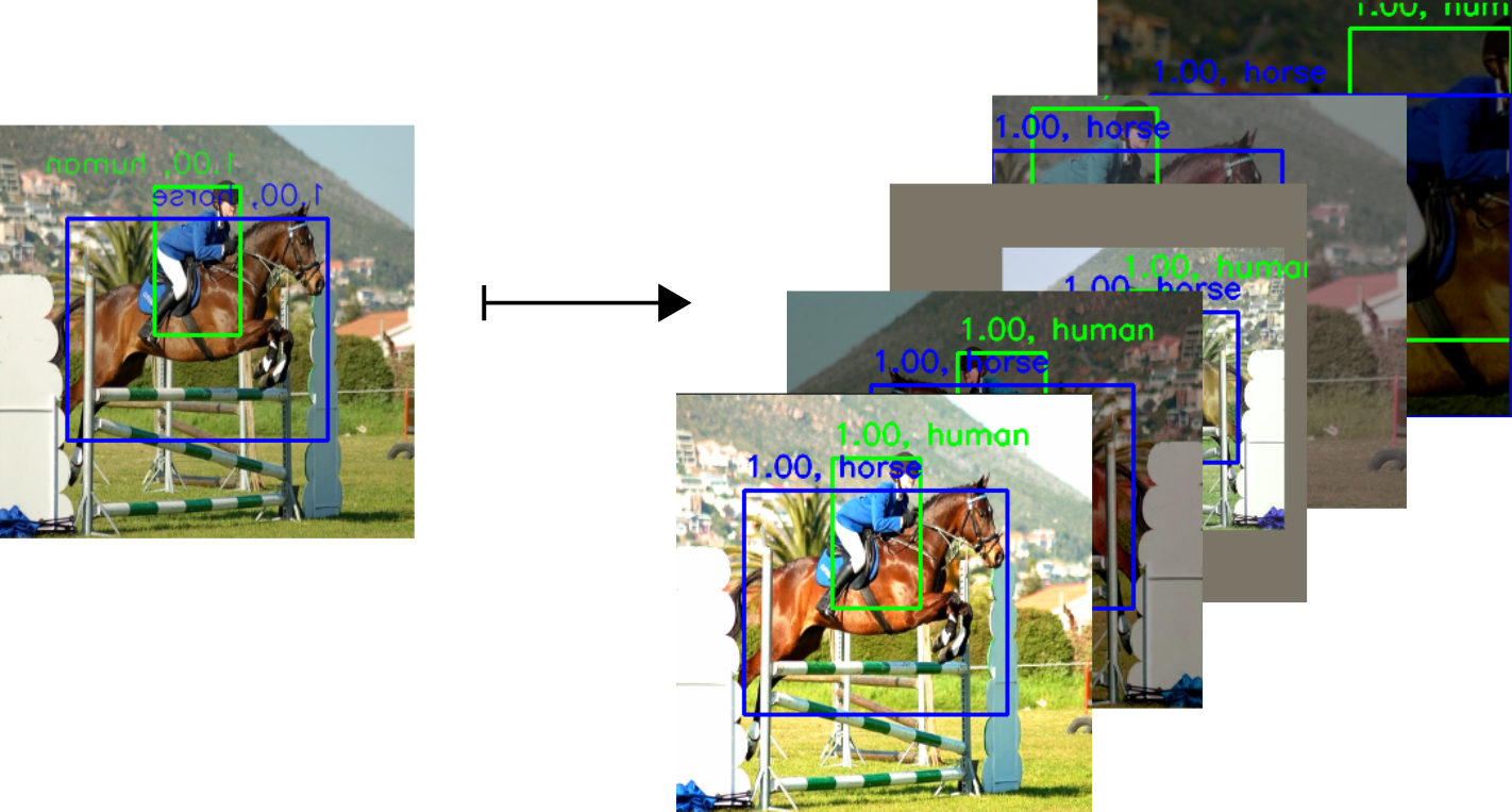 使用这些处理器,我们可以构建更复杂的流水线,例如 用于目标检测的数据增强:pr.AugmentDetection