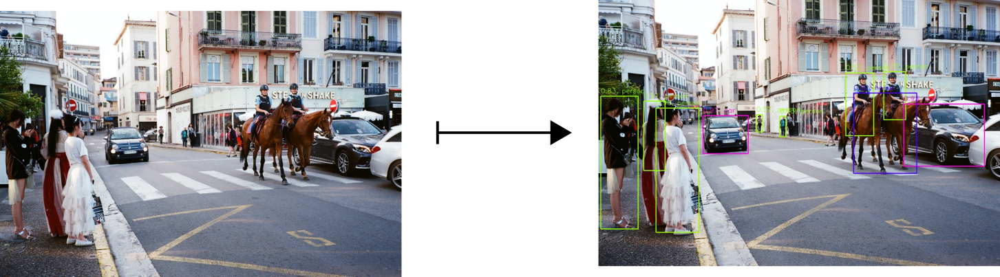 开箱即用的简易预测功能。例如,为了检测目标,我们可以调用以下流水线: