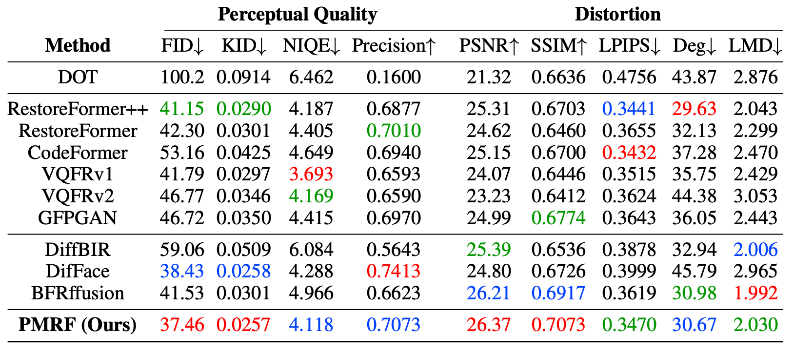 PMRF 是一种新颖的逼真图像修复算法。它(在理论上)近似于在完美感知质量约束下,能够最小化均方误差(MSE)的最优估计器。