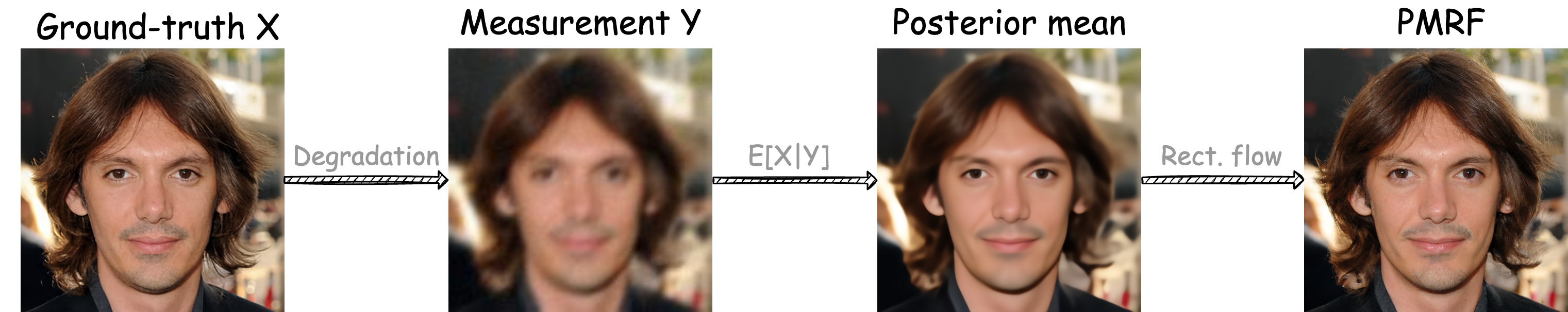 PMRF 是一款专为照片级真实感图像修复设计的先进算法,其核心目标是在确保修复后图像视觉效果自然逼真的前提下,尽可能降低图像与原始清晰图像之间的均方误差(MSE)。传统修复方法往往难以兼顾“看起来真实”与“数值误差最小”这两个目标,而 PMRF 通过独特的“后验均值整流流”技术,从理论上证明了其能够逼近这一最优平衡点,有效解决了去模糊、超分辨率等任务中常见的细节丢失或伪影问题。