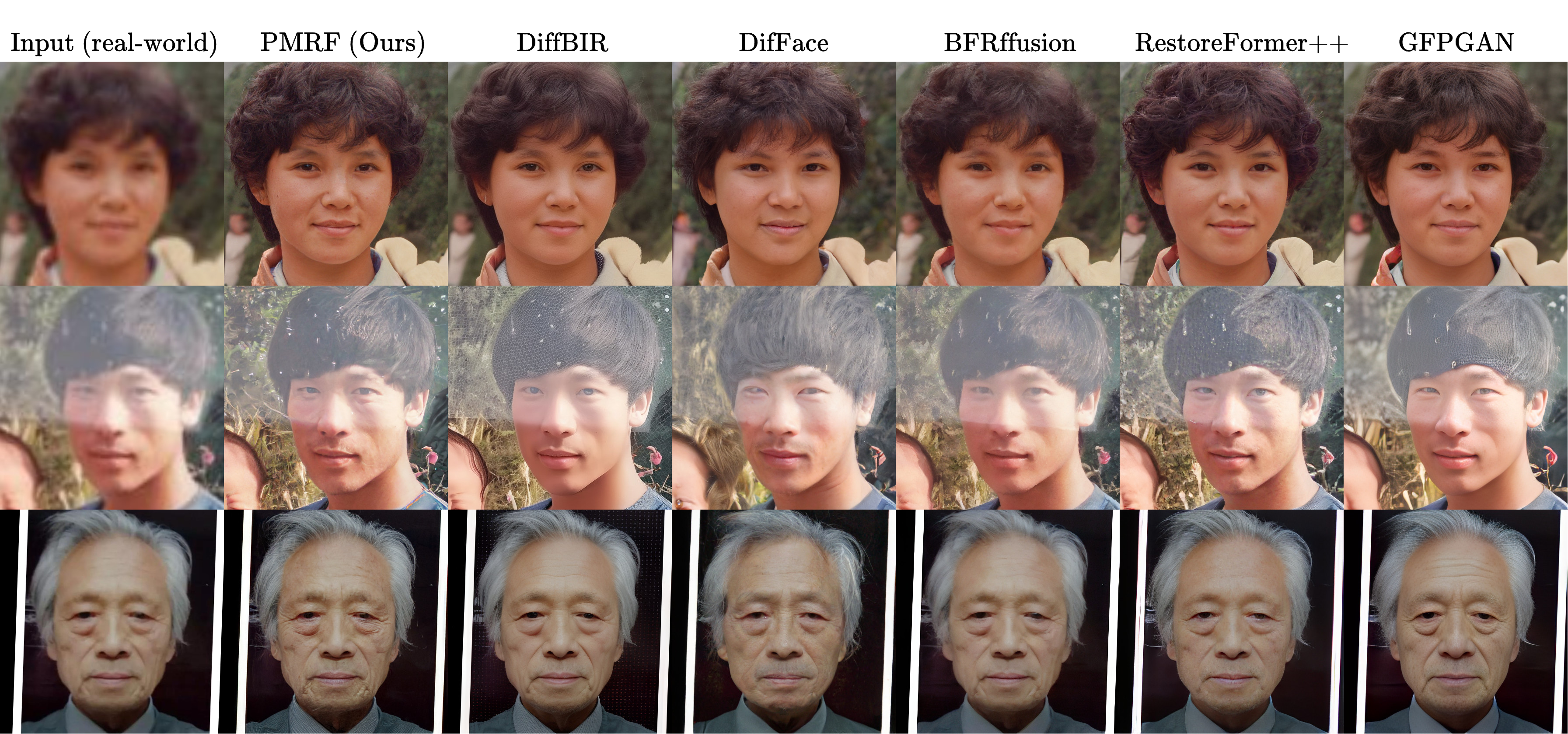 - 照片级真实还原:利用后验均值整流流技术,恢复出的皮肤毛孔、发丝等高频细节自然逼真,彻底消除了传统方法的模糊感或虚假纹理。