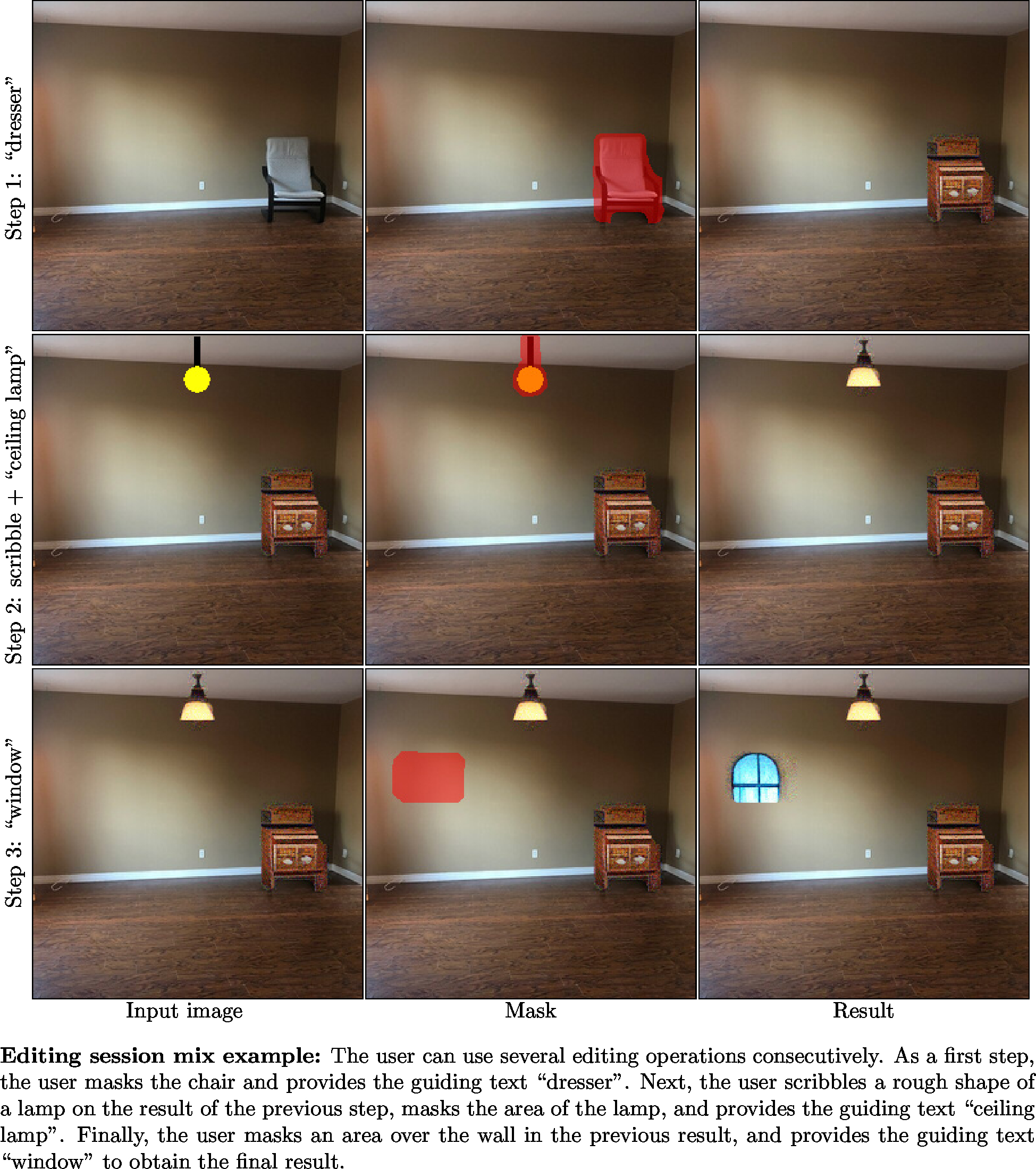 摘要:自然语言为图像编辑提供了一种非常直观的界面。在本文中,我们提出了首个基于自然语言描述和 ROI 掩码,在通用自然图像中执行局部(基于区域)编辑的解决方案。 我们通过利用并结合一个预训练的语言-图像模型(CLIP),以引导编辑过程朝着用户提供的文本提示方向进行;同时使用去噪扩散概率模型(DDPM)生成自然逼真的结果,从而实现这一目标。 为了将编辑后的区域与图像未更改的部分无缝融合,我们在一系列噪声水平下,将输入图像的加噪版本与局部文本引导的扩散潜在表示进行空间混合。 此外,我们还表明,在扩散过程中加入数据增强可以有效缓解对抗性结果的发生。 我们从定性和定量两个方面与多个基线及相关方法进行了比较,并证明我们的方法在整体真实感、背景保留能力以及与文本的匹配度等方面均优于这些现有方案。最后,我们展示了若干文本驱动的编辑应用,包括向图像中添加新对象、移除/替换/修改现有对象、更换背景以及图像外推等。