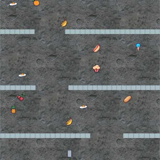 这是一款滚动式游戏,玩家需操控一台机器人,在墙缝间穿梭,并沿途收集水果。玩家每收集到一颗水果可获得正向奖励,而若误捡到非水果物品,则可获得更大的负向奖励。关卡中产生的物体有一半为水果(正向奖励),另一半为非水果(负向奖励)。如果玩家成功抵达关卡终点,将获得丰厚奖励。有时,玩家还需使用钥匙解锁那些阻挡道路的门。 |