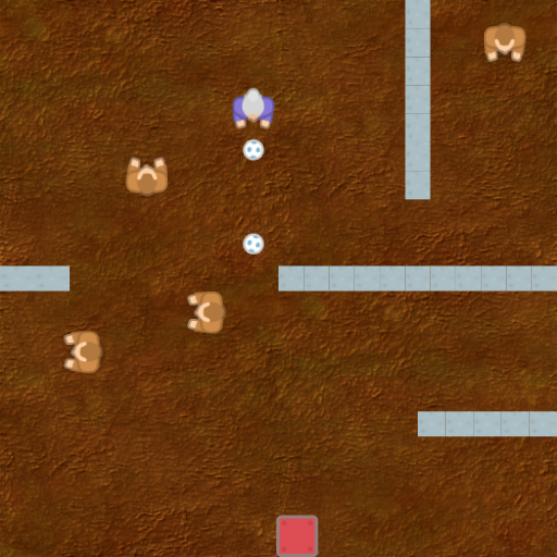该游戏 loosely 受Atari游戏《Berzerk》的启发。玩家出生在一个房间内,房间的墙壁和敌人分布随机。触碰墙壁会直接导致游戏结束,关卡就此终止。玩家的移动速度相对缓慢,可在整个房间内自由穿梭。游戏中还有缓慢移动的敌人,它们偶尔会向玩家投掷球状物。玩家也可以投掷球状物,但只能朝自己所面向的方向投掷。若所有敌人均被击中,玩家可前往解锁的平台,从而获得显著的关卡通关奖励。 |