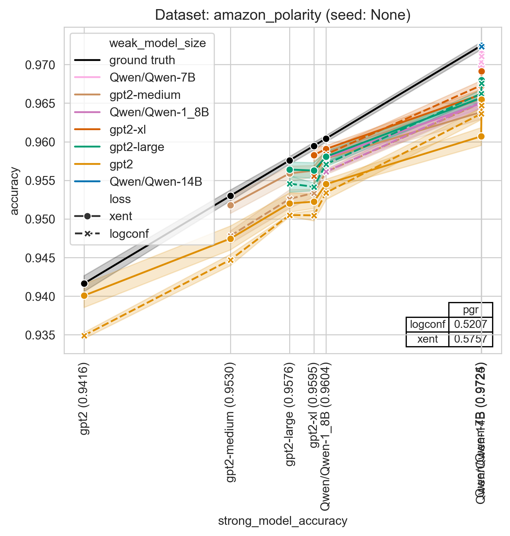 这种旧式方法与新的sweep.py风格的主要区别在于:train_weak_to_strong.py总是会训练三个模型——弱模型、迁移模型和强模型。而sweep.py则通过一次性训练一系列基准模型(用作弱模型和强模型)以及一系列迁移模型来优化这一流程。这减少了重复训练,也更简单易用。此外,由train_simple.py和sweep.py生成的文件也更加易于使用。