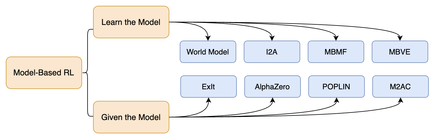 我们简单地将“基于模型强化学习”分为两大类:“学习模型”和“给定模型”。