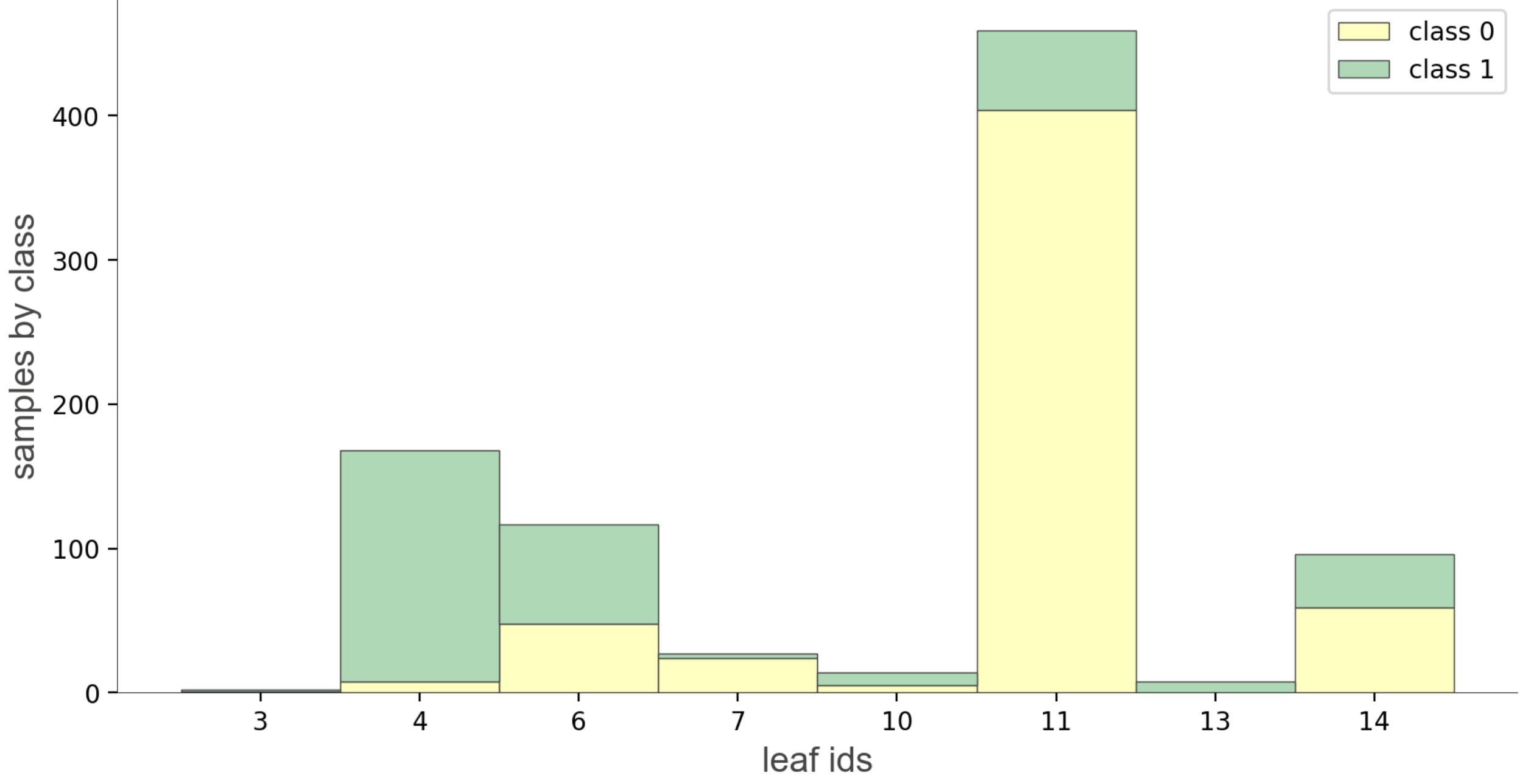 - 叶节点:预测结果、置信度分数、样本数量以及类别分布