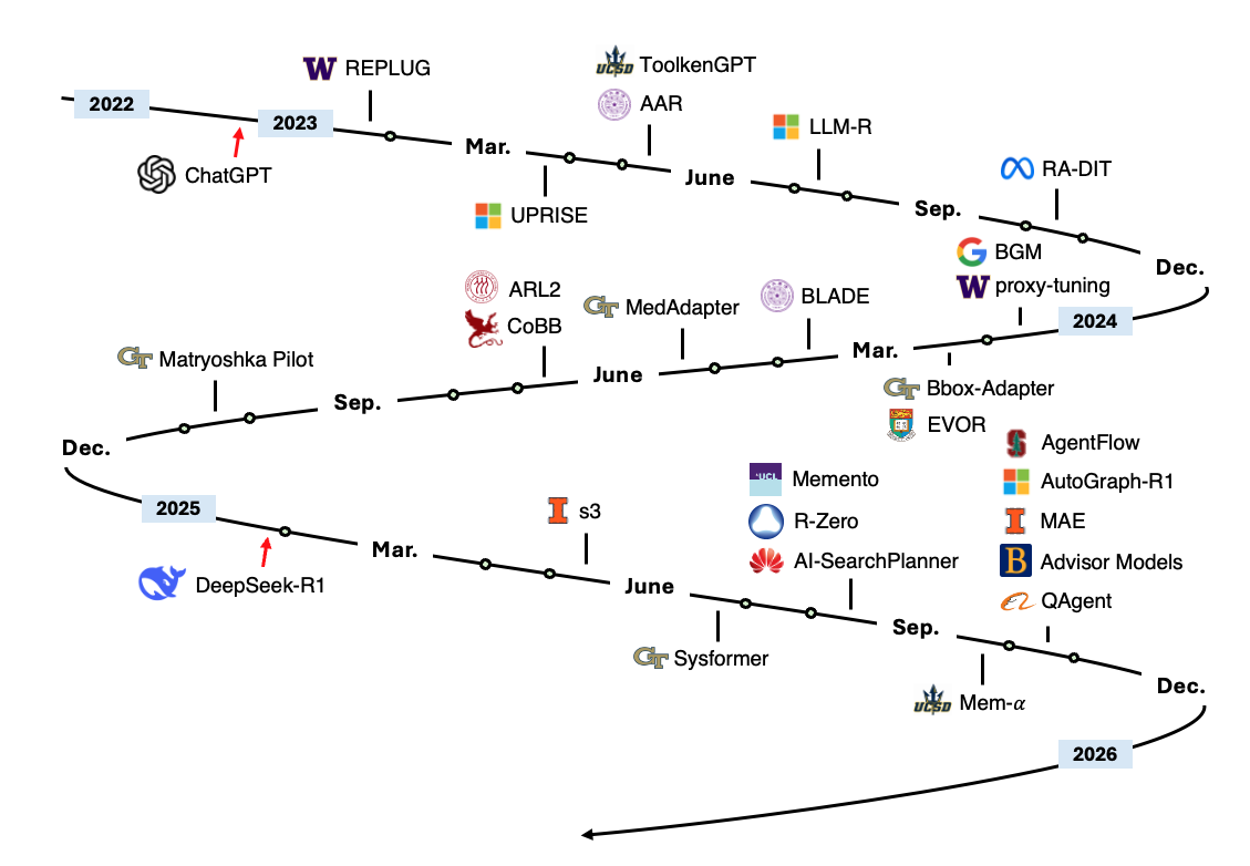 一份精心整理的关于智能体AI系统适应策略的论文列表。本仓库与论文《智能体AI的适应》(正在进行中)配套使用。