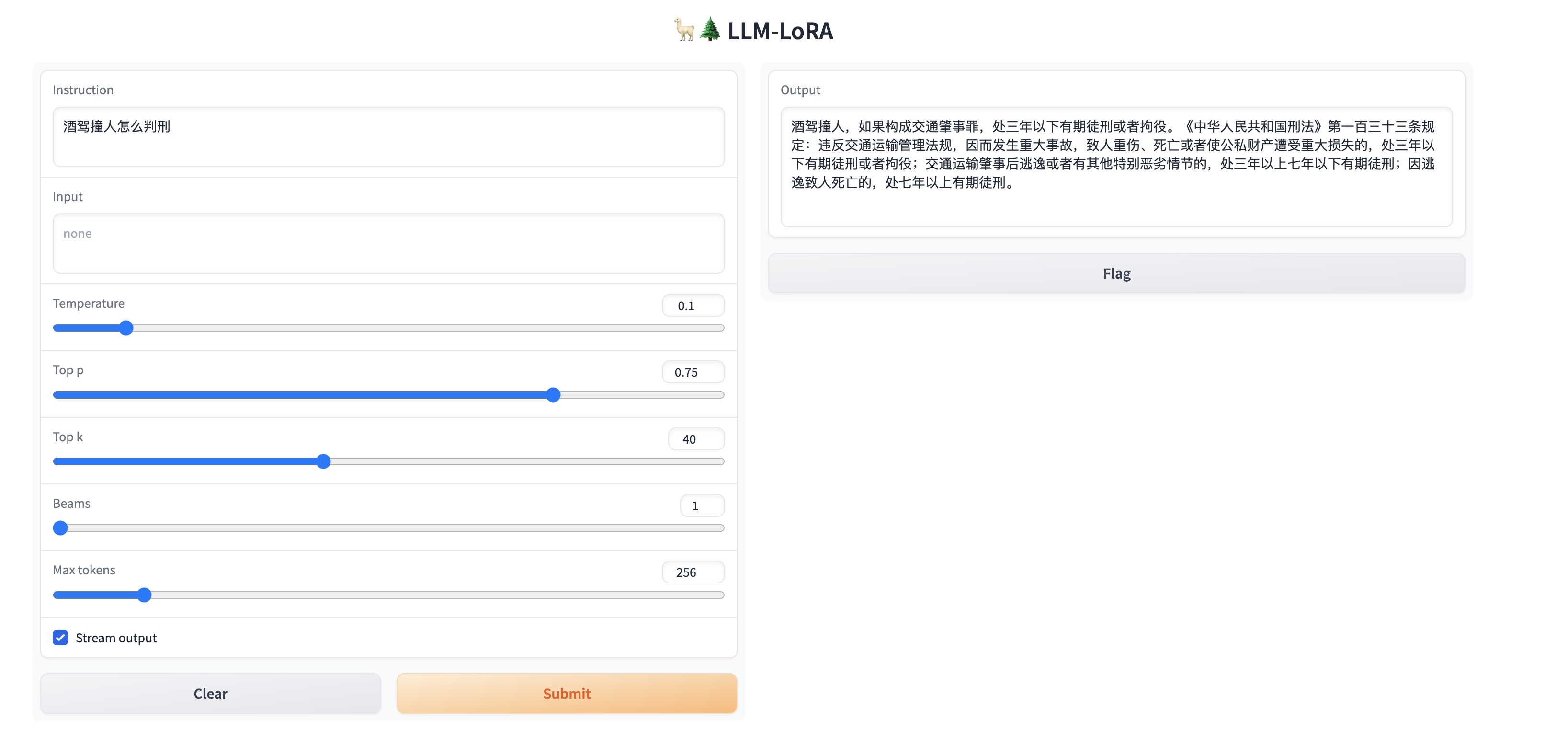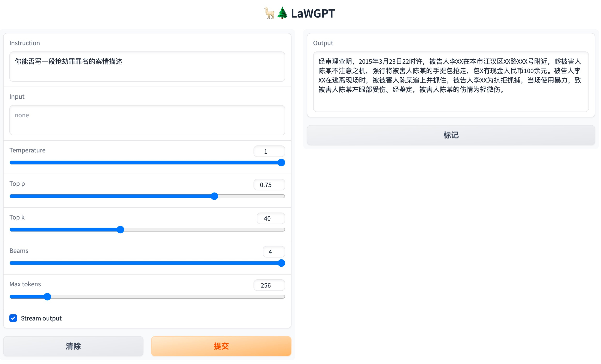 - 模型输出受多种不确定性因素影响,本项目当前无法保证其准确性,严禁用于真实法律场景。