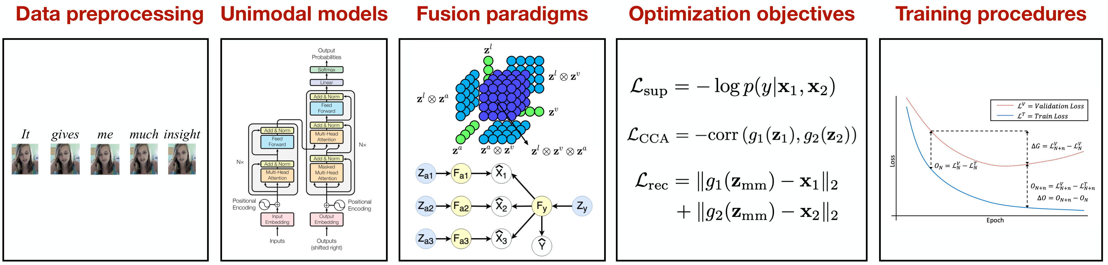 - 融合范式:早期/晚期融合、NL-gate、张量融合、乘法交互、低秩张量融合等(参见 fusions/ 目录)。