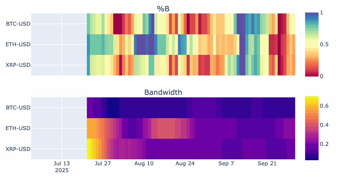 - 创建一个 GIF 动画,展示多个标的的布林带百分比 B 值和带宽变化:
